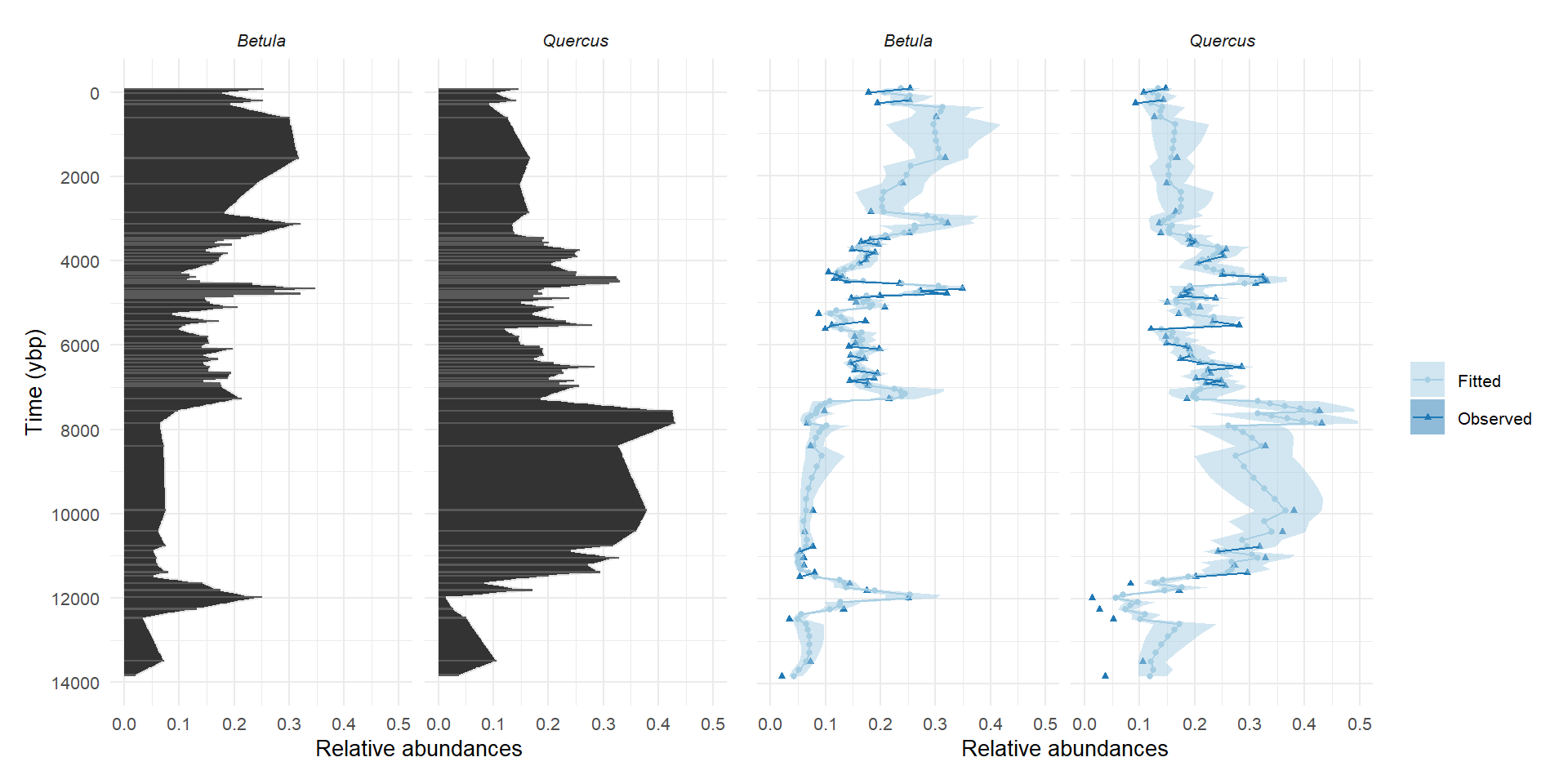 The cutting edge in palaeoecology is to establish potential causes of observed patterns in species relative abundances. For example, are observed patterns driven by: